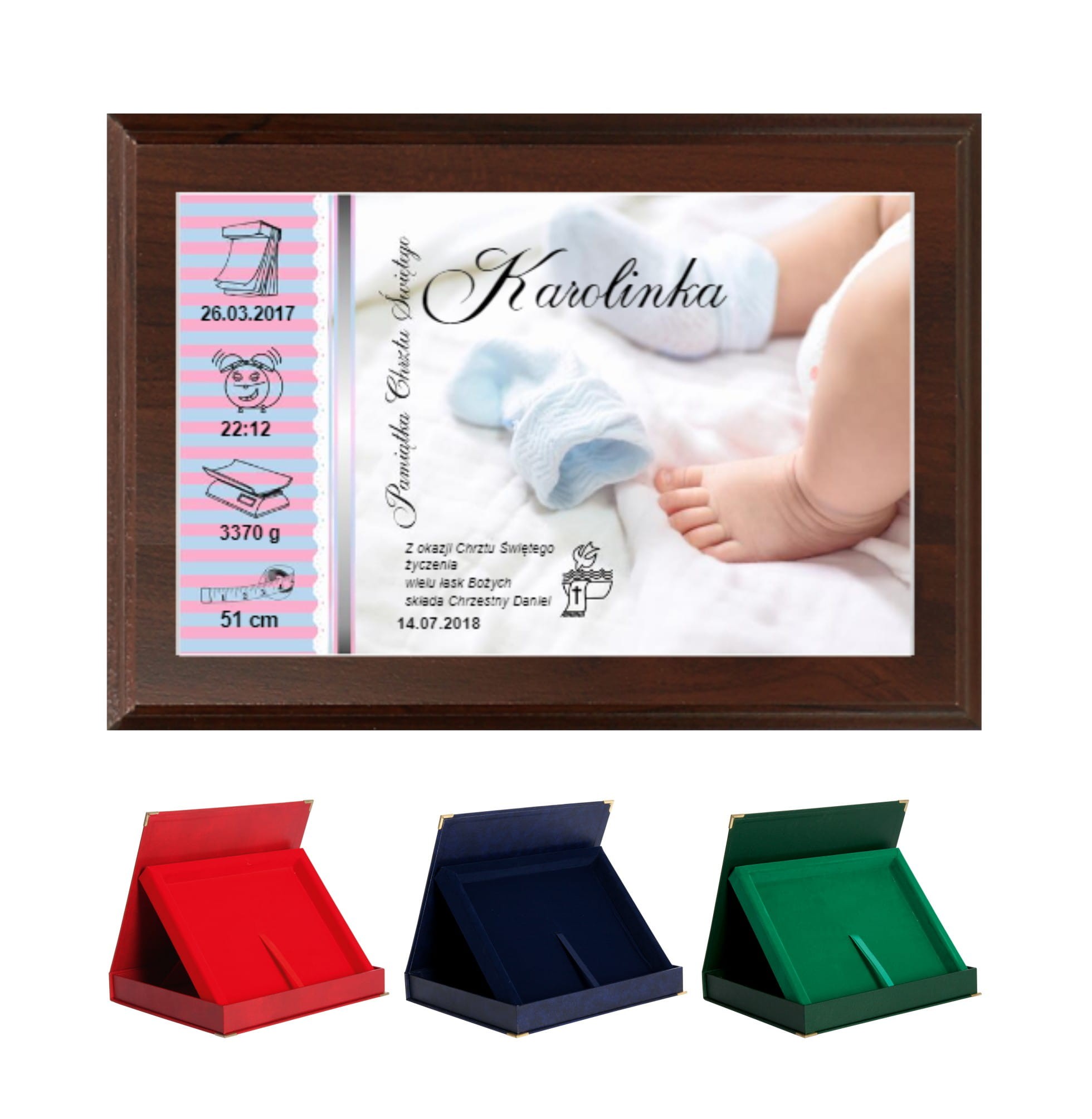 Prezentowany dyplom drewniany z nadrukiem na blaszce to wyjątkowy prezent z okazji Chrztu Świętego, który łączy w sobie trwałość, estetykę i osobisty charakter. Wykonany z wysokiej jakości drewna, wyróżnia się starannym wykonaniem. Nadruk na blaszce zawiera imię dziecka, delikatne zdjęcie w tle oraz metryczkę dziecka z kluczowymi informacjami, takimi jak data i godzina narodzin, waga oraz długość - co nadaje mu wyjątkowego i indywidualnego charakteru. Taki dyplom to piękna forma upamiętnienia sakramentu Chrztu Świętego.