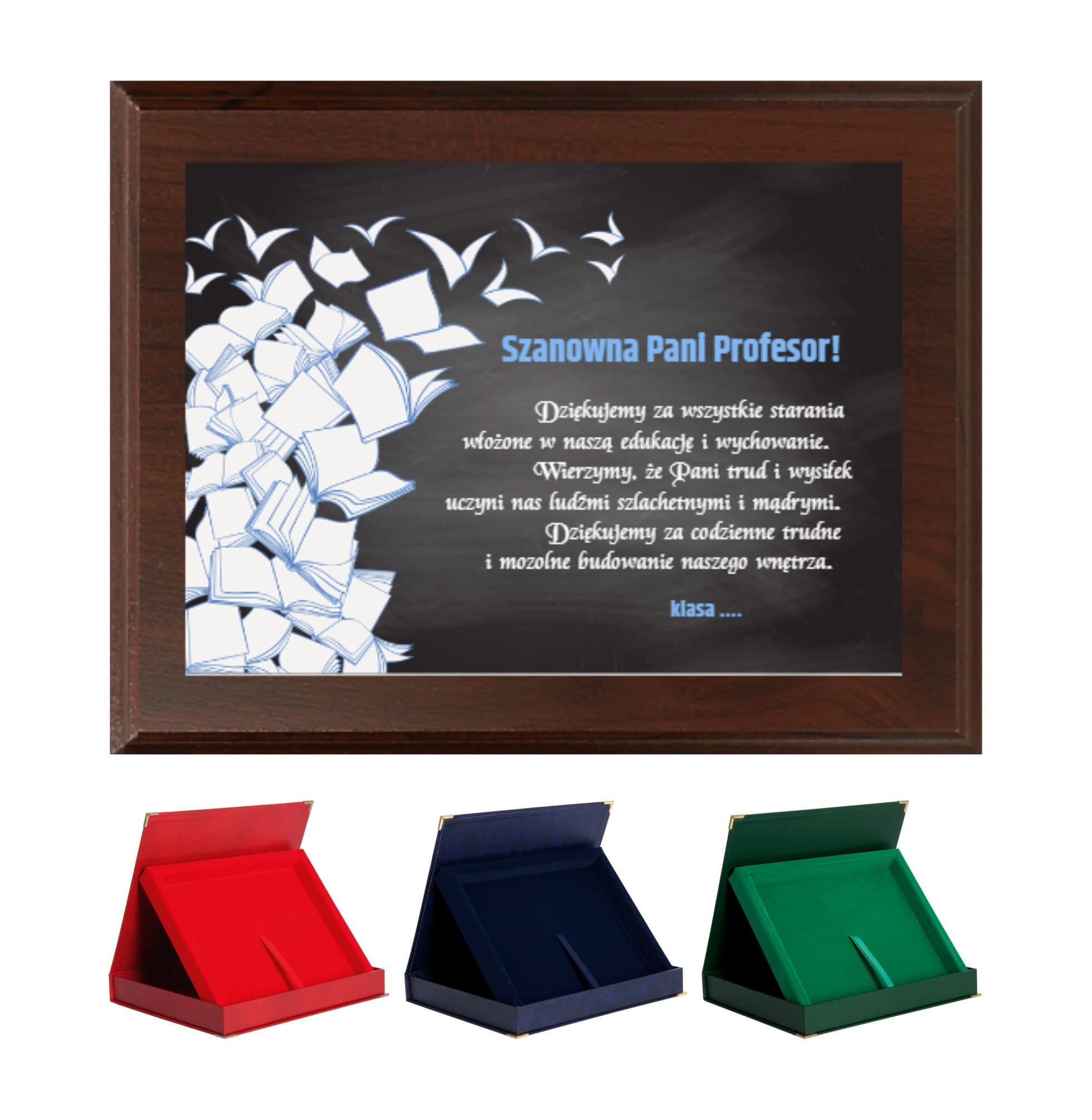 Dyplom można spersonalizować oraz połączyć go z eleganckim etui w jednym z trzech kolorów: czerwonym, zielonym lub granatowym. Idealny na Dzień Nauczyciela, jako wzruszający gest podziękowania za wpływ, jaki nauczyciele mają na życie swoich uczniów.