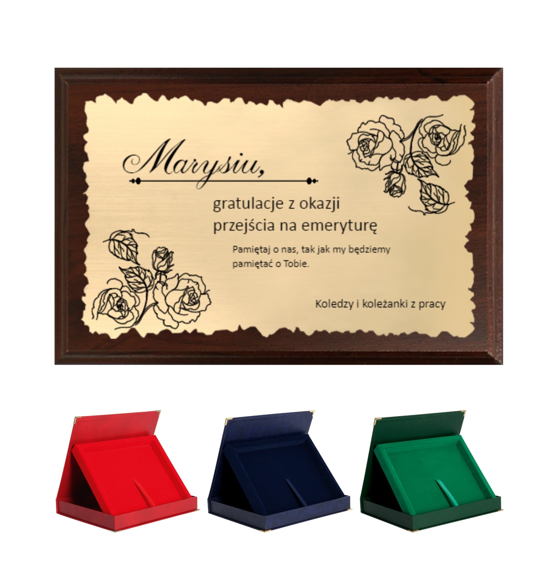 Dyplom można spersonalizować oraz połączyć z eleganckim etui w jednym z trzech kolorów: czerwonym, zielonym lub granatowym, co podkreśla prestiż i wyjątkowość tej okazji. Jest to doskonała pamiątka na długie lata, przypominająca o owocnych latach pracy i zasługach.