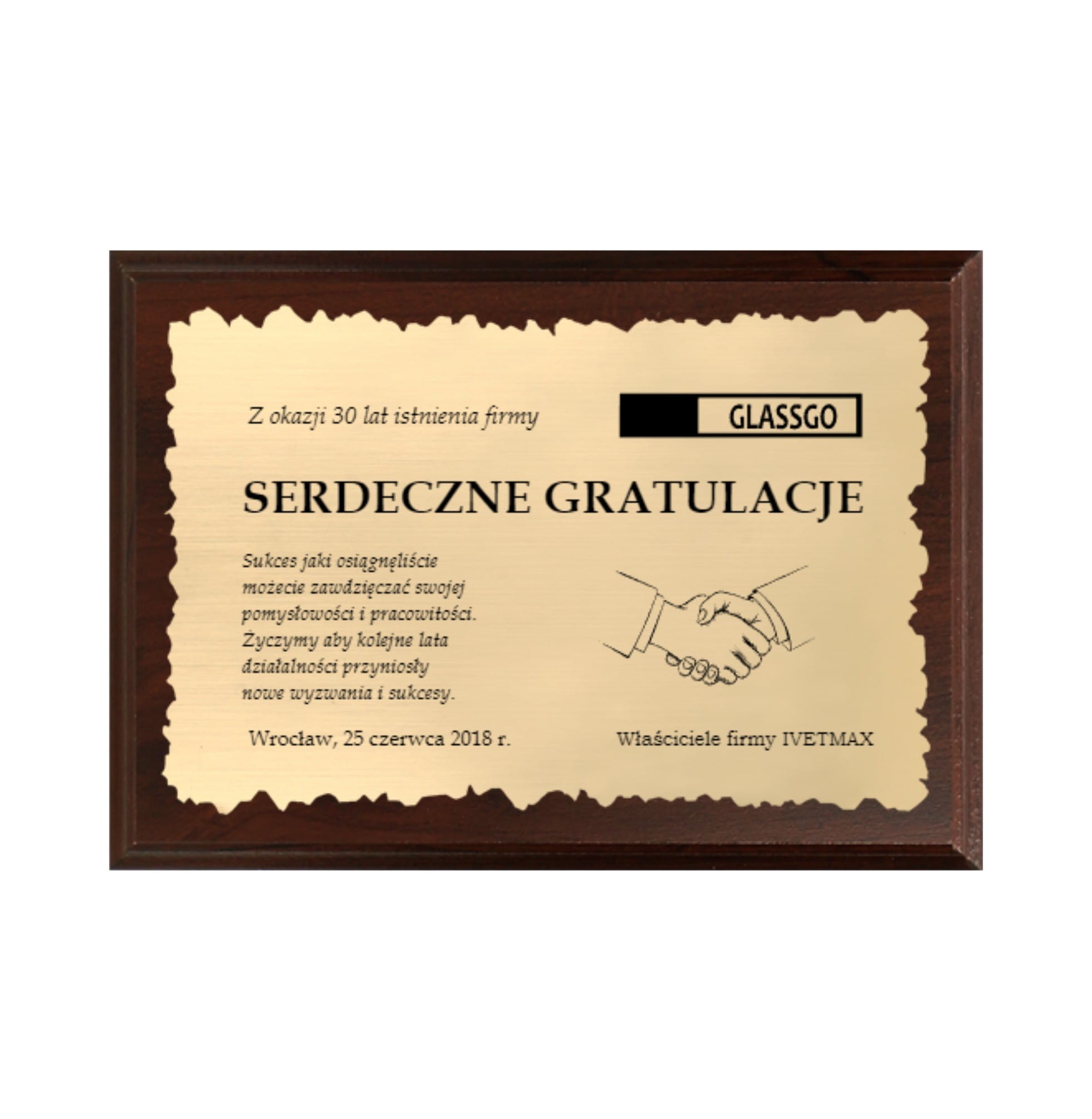 Dyplom grawerowany HG15 jubileusz - grawerton biznes
