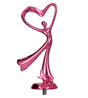 Prezentowana różowa figurka wykonana została z wysokiej jakości plastiku i przedstawia nowoczesny motyw tańca, tancerkę unoszącą dłonie, z których formuje się serce. Symbolizuje pasję, ekspresję i miłość do sztuki tanecznej. Osadzona na gwintowanym cokole, umożliwia łatwy montaż na jednym z wielu dostępnych postumentów, co pozwala na dopasowanie jej do różnych typów nagród i wyróżnień.