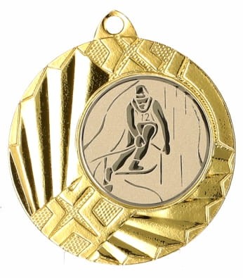 Elegancki medal wykonany z wysokiej jakości metalu, z finezyjnym wzornictwem wokół emblematu przedstawiającego narciarstwo. Emblemat symbolizuje odwagę, zwinność oraz umiejętność pokonywania trudnych warunków terenowych, które towarzyszą narciarzom podczas zjazdów. Medal dostępny w trzech podstawowych wersjach kolorystycznych, umożliwiając dopasowanie do rangi osiągnięć. Dzięki dodatkowej możliwości personalizacji poprzez dodanie grawera lub nadruku, medal zyskuje indywidualny charakter, stając się wyjątkową pamiątką. Jest to idealna nagroda dla uczestników zawodów narciarskich na każdym poziomie, a także doskonałe wyróżnienie na wydarzenia promujące aktywność zimową oraz zdrową rywalizację. Medal ten odzwierciedla ducha narciarstwa, w którym liczą się szybkość, technika oraz miłość do zimowych krajobrazów.