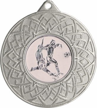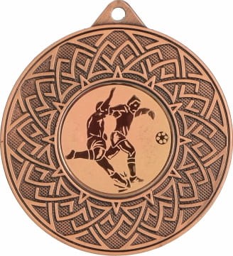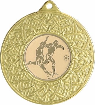 Medal wykonany z metalu z klasycznym wzorem w formie rozety, ozdobiony centralnym emblematem przedstawiającym motyw piłki nożnej. Taki emblemat symbolizuje pasję, pracę zespołową oraz ducha sportowej rywalizacji, fundamentalne wartości tej popularnej dyscypliny. Piłka nożna łączy w sobie szybkie tempo, precyzję i strategiczne myślenie, a zastosowany emblemat oddaje emocje związane z każdym rozegranym meczem, każdą strzeloną bramką i każdym wywalczonym punktem. Medal dostępny jest w trzech klasycznych wersjach kolorystycznych: złotej, srebrnej i brązowej, co umożliwia dopasowanie do odpowiedniego poziomu wyróżnienia. Istnieje także dodatkowa opcja personalizacji poprzez dodanie grawera lub nadruku, dzięki czemu stanie się wyjątkową pamiątką i zyska indywidualny charakter. Taka nagroda to doskonałe wyróżnienie na turnieje piłkarskie, ligowe rozgrywki, zawody szkolne oraz inne imprezy związane z tą dyscypliną. Medal ten uhonoruje zawodników za ich zaangażowanie, pracę zespołową i determinację, będąc symbolem każdego strzelonego gola, wygranej akcji i wspólnego dążenia do zwycięstwa na boisku.