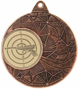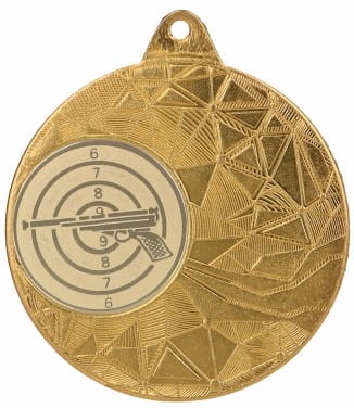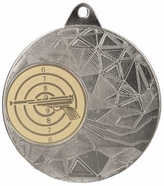 Prezentowany medal wykonany został z metalu o wysokiej jakości, z efektownym wzornictwem inspirowanym stylem potłuczonego szkła. Na awersie nagrody widnieje emblemat przedstawiający moty strzelectwa, broń krótką na tle tarczy, co symbolizuje precyzję i pewność ręki, stanowiąc fundament tej dyscypliny. Dostępne są trzy klasyczne wersje kolorystyczne medalu: złota, srebrna i brązowa, umożliwiając dopasowanie do rangi osiągnięć. Istnieje także możliwość personalizacji poprzez dodanie grawera lub nadruku, dzięki czemu nagroda zyska unikalny charakter i stanie się wyjątkową pamiątką dla osoby obdarowanej. To idealne wyróżnienie na turnieje strzeleckie, mistrzostwa oraz zawody klubowe, celebrujące umiejętność koncentracji, dokładności i opanowania. Medal ten uhonoruje wytrwałość i doskonałość techniczną, przypominając przy tym o każdej chwili skupienia, która doprowadziła ich do sukcesu.