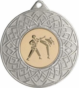 Prezentowany medal wykonany został z metalu i ozdobiony klasycznych wzorem w formie rozety otaczającym centralny emblemat. Zastosowany emblemat przedstawia motyw karate, symbolizując siłę, dyscyplinę i harmonię ciała z umysłem. Karate to nie tylko sport, ale również filozofia, opierająca się na zasadach szacunku, samodoskonalenia i samokontroli. Medal dostępny jest w trzech podstawowych wersjach kolorystycznych: złotej, srebrnej i brązowej, co umożliwia dopasowanie go do odpowiedniego poziomu wyróżnienia. Istnieje także dodatkowa opcja personalizacji poprzez dodanie grawera lub nadruku na tył medalu, dzięki czemu stanie się wyjątkową pamiątką i zyska indywidualny charakter. Taka nagroda to doskonałe wyróżnienie na turnieje karate, egzaminy na wyższe stopnie, zawody szkolne oraz inne wydarzenia celebrujące sztuki walki i ducha sportowej rywalizacji. Medal uhonoruje zawodników za ich technikę, poświęcenie oraz dążenie do doskonałości, będąc symbolem każdej wygranej i zdobytego stopnia mistrzowskiego.