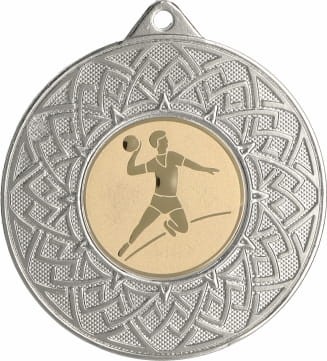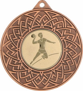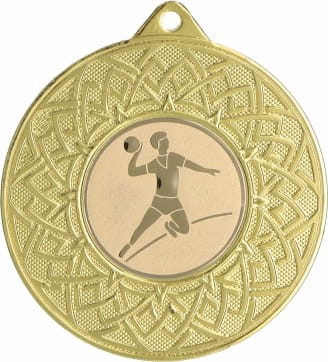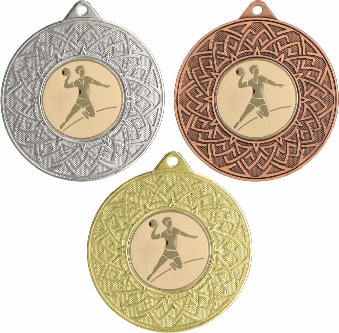 Medal metalowy ozdobiony klasycznym wzorem w formie rozety otaczającym emblemat z motywem piłki ręcznej. Zastosowany emblemat symbolizuje siłę, zwinność oraz ducha zespołowej współpracy, kluczowe cechy w tej emocjonującej dyscyplinie sportowej. Piłka ręczna to sport pełen szybkich akcji, wymagająca doskonałej kondycji, precyzyjnych rzutów oraz umiejętności taktycznego myślenia. Dostępne są trzy klasyczne wersje kolorystyczne: złota, srebrna i brązowa, co umożliwia dopasowanie do odpowiedniego poziomu wyróżnienia. Istnieje także, dodatkowa opcja personalizacji poprzez dodanie grawera lub nadruku, dzięki czemu zyska on indywidualny charakter i stanie się wyjątkową pamiątką. Taka nagroda to doskonałe wyróżnienie na turnieje piłki ręcznej, mistrzostwa ligowe, zawody szkolne oraz inne wydarzenia związane z tą dyscypliną. Medal uhonoruje zawodników za ich siłę, precyzję i umiejętność współpracy, będąc symbolem każdego wygranego meczu, zdobytego gola i triumfu na parkiecie.