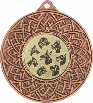 Medal wykonany został z wysokiej jakości metalu i ozdobiony klasycznym wzorem w formie rozety otaczającym emblemat z motywem ras psów. Zastosowany emblemat symbolizuje lojalność, przyjaźń oraz oddanie, cechy nieodłączne dla naszych czworonożnych towarzyszy. Psy to symbol wiernego partnerstwa i współpracy, zarówno w codziennym życiu, jak i w sporcie, gdzie często wykazują się wyjątkowymi umiejętnościami. Medal dostępny jest w trzech klasycznych wersjach kolorystycznych: złotej, srebrnej i brązowej, co umożliwi dopasowanie do odpowiedniego poziomu wyróżnienia. Dodatkowo, istnieje również opcja personalizacji poprzez dodanie grawera lub nadruku, dzięki czemu medal zyska indywidualny charakter i stanie się wyjątkową pamiątką dla osoby obdarowanej. Taka nagroda to doskonałe wyróżnienie na wystawy psów rasowych, konkursy kynologiczne, zawody sportów kynologicznych oraz imprezy promujące opiekę nad zwierzętami. Medal uhonoruje właścicieli i ich psy za ich zaangażowanie, współpracę oraz miłość do czworonogów.