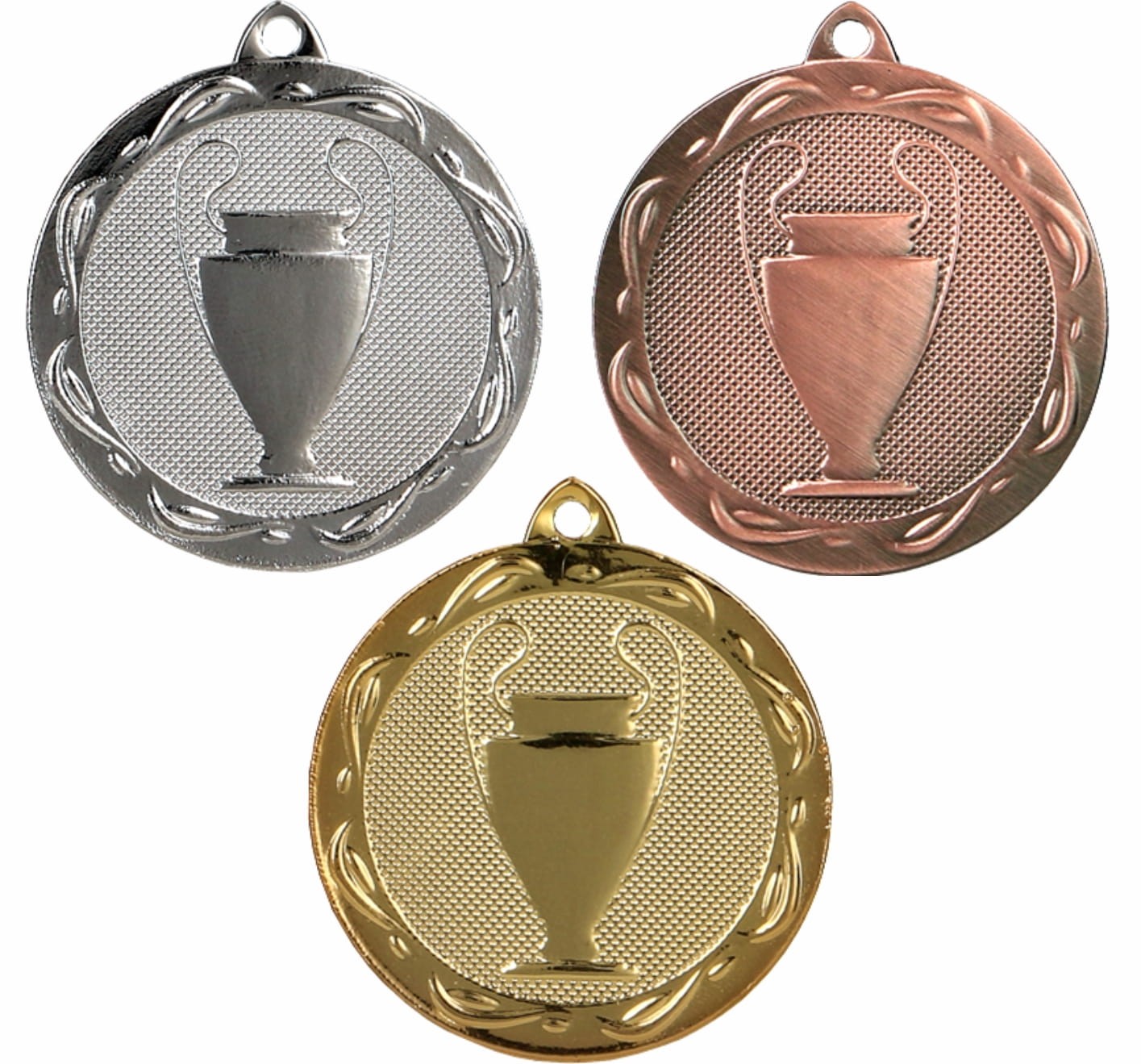 Prezentowany medal tematyczny wykonany został z trwałego metalu i przedstawia puchar, symbolizujący zwycięstwo, osiągnięcia i najwyższą formę uznania. Motyw pucharu to uniwersalny znak triumfu, podkreślający determinację, wysiłek i sukces zdobywcy. Dostępne są trzy klasyczne kolory medalu: złoty, srebrny i brązowy, dzięki czemu pozwala na wyróżnienie uczestników zajmujących czołowe miejsca. Dodatkowo istnieje możliwość personalizacji poprzez dodanie grawera lub nadruku na tylnej stronie medalu, nadając mu unikalny i pamiątkowy charakter. Taka nagroda doskonale sprawdzi się na różnego rodzaju zawody sportowe, konkursy czy wydarzenia, gdzie liczy się wyróżnienie najlepszych. Uhonoruje uczestników zarówno w profesjonalnych, jak i amatorskich imprezach.