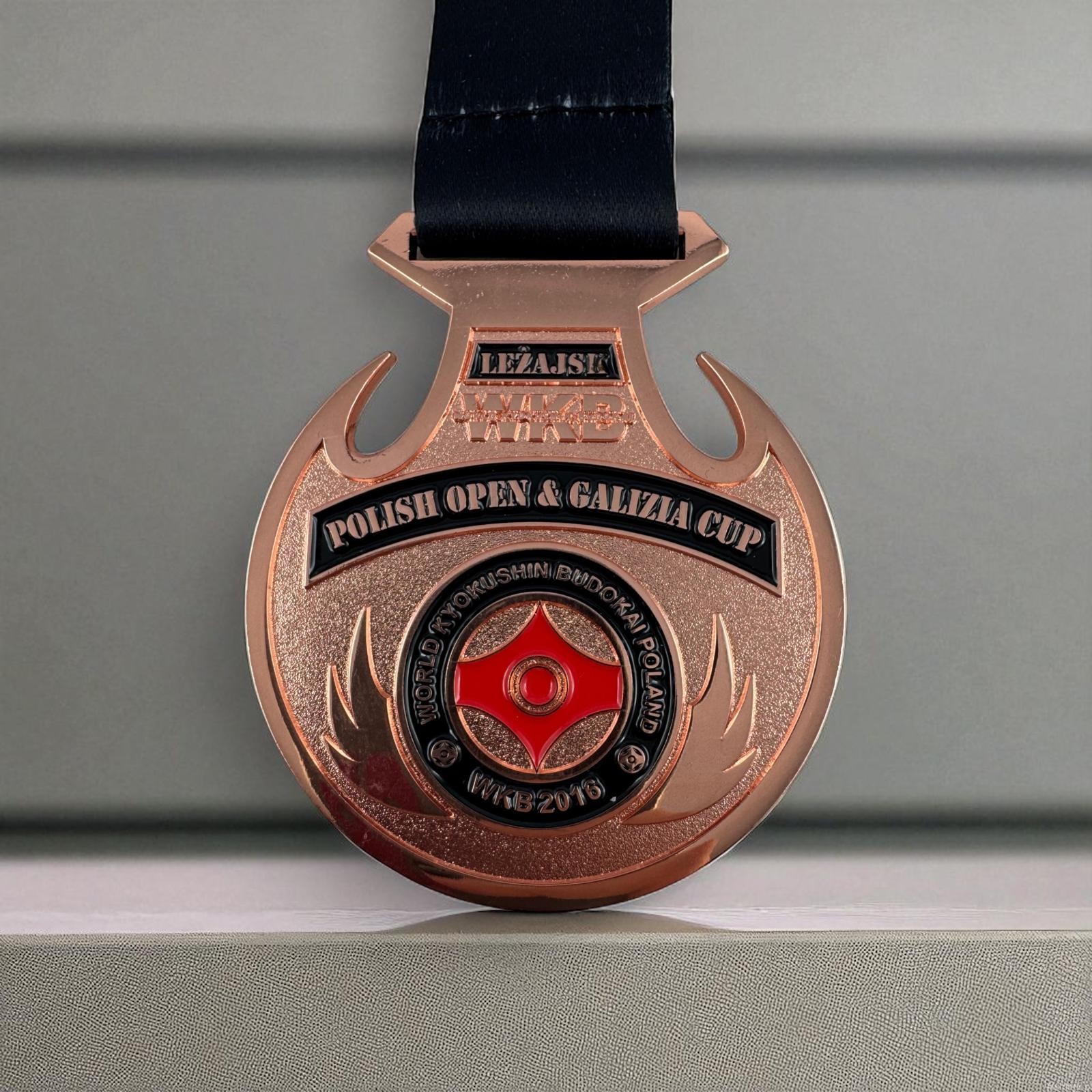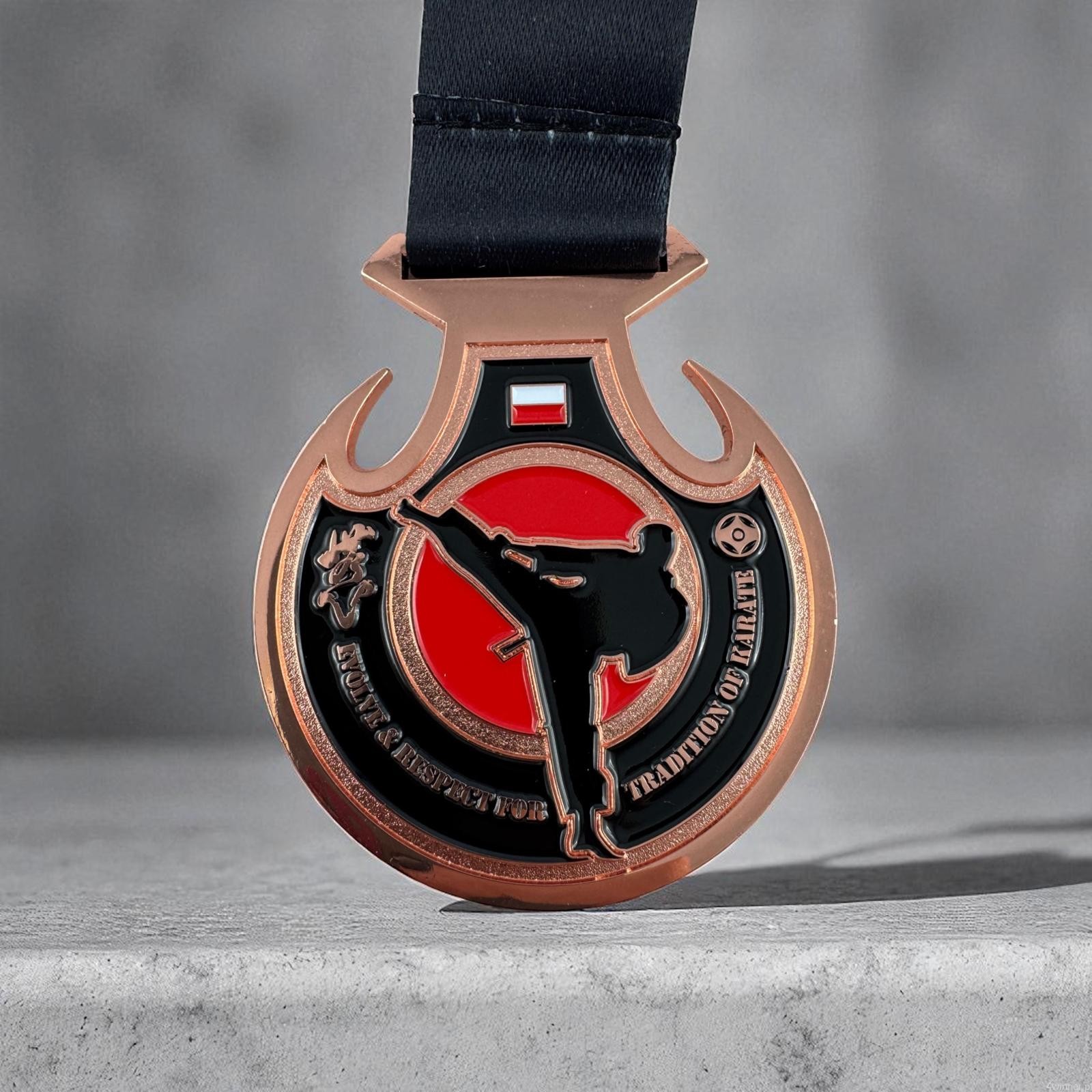 Centralnym elementem medalu jest dokładnie odzwierciedlone logo klubu karate, które dzięki starannemu odlewowi i dbałości o każdy, nawet najdrobniejszy detal zyskuje głębię oraz niepowtarzalny charakter. Każdy element - od wyrazistych konturów po subtelne detale - podkreśla profesjonalizm wykonania i unikatowy charakter projektu. Tak elegancki i trwały medal doskonale oddaje ducha rywalizacji i sportowego honoru, będąc nie tylko nagrodą, lecz również symbolem ciężkiej pracy, dyscypliny i pasji. Idealnie sprawdzi się podczas lokalnych zawodów, jak i prestiżowych turniejów karate.