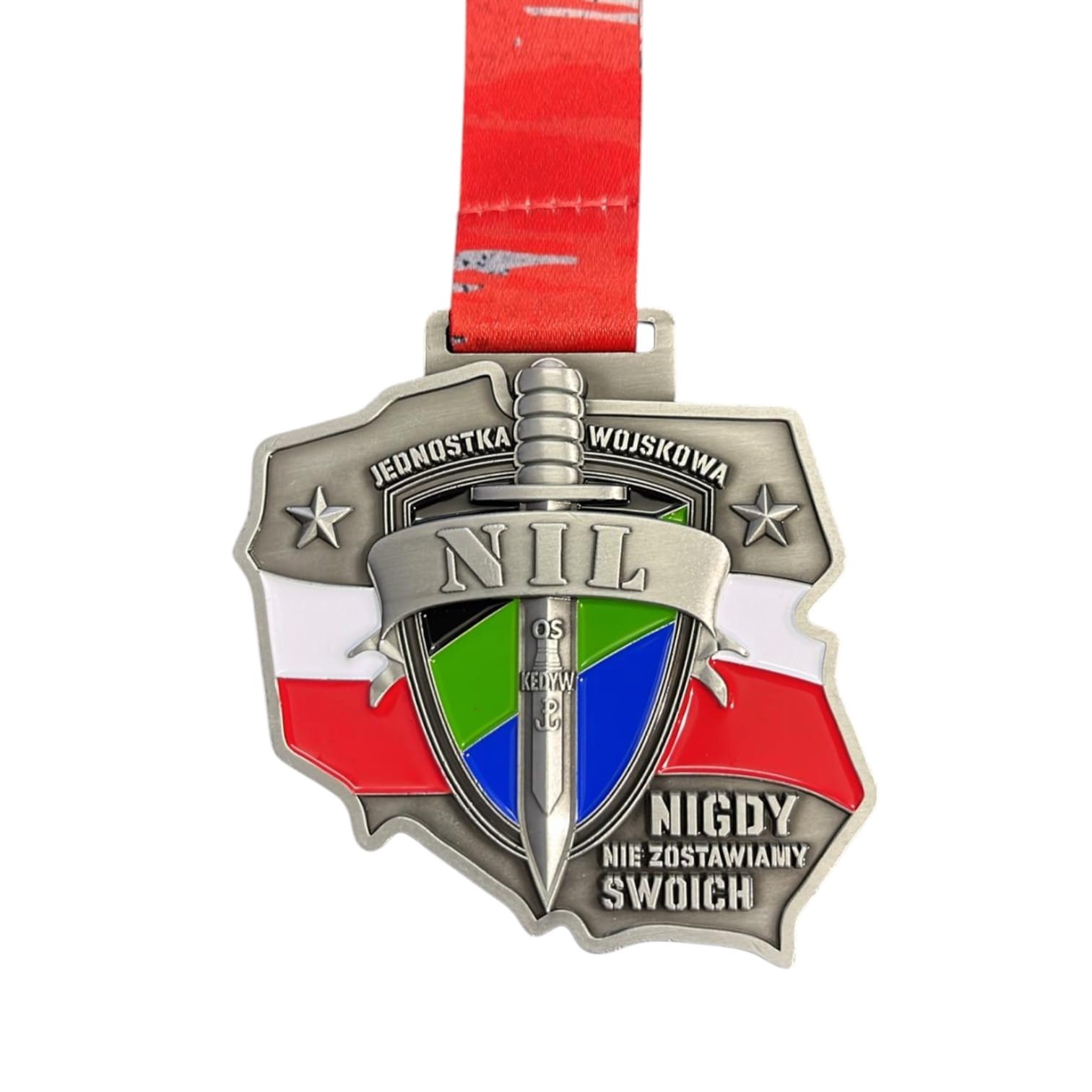 W centralnym punkcie medalu, w symbolicznej lokalizacji odpowiadającej sercu Polski, umieszczono logo Jednostki Wojkowej NIL. Całość została odlana z medalu o wysokiej jakości, charakteryzuje się solidną masą i efektowną fakturą 3D. Medal doskonale sprawdzi się jako wyróżnienie dla żołnierzy i weteranów Jednostki Wojskowej NIL, z okazji zakończenia służby lub awansu, czy również jako piękna pamiątka z uroczystości jednostki, jubileuszy lub wydarzeń specjalnych. To symbol odwagi i patriotyzmu, który niesie ze sobą nie tylko wartość estetyczną, lecz także głęboką treść i dumę z przynależności do jednej z najbardziej prestiżowych formacji w polskich siłach zbrojnych.