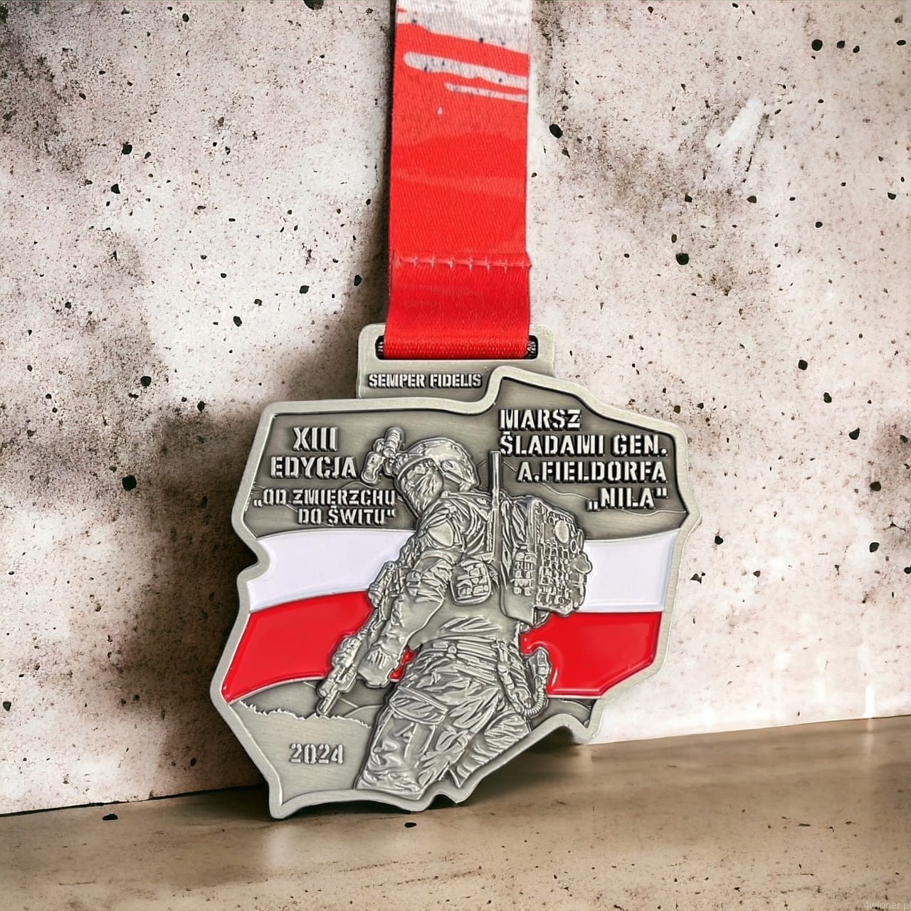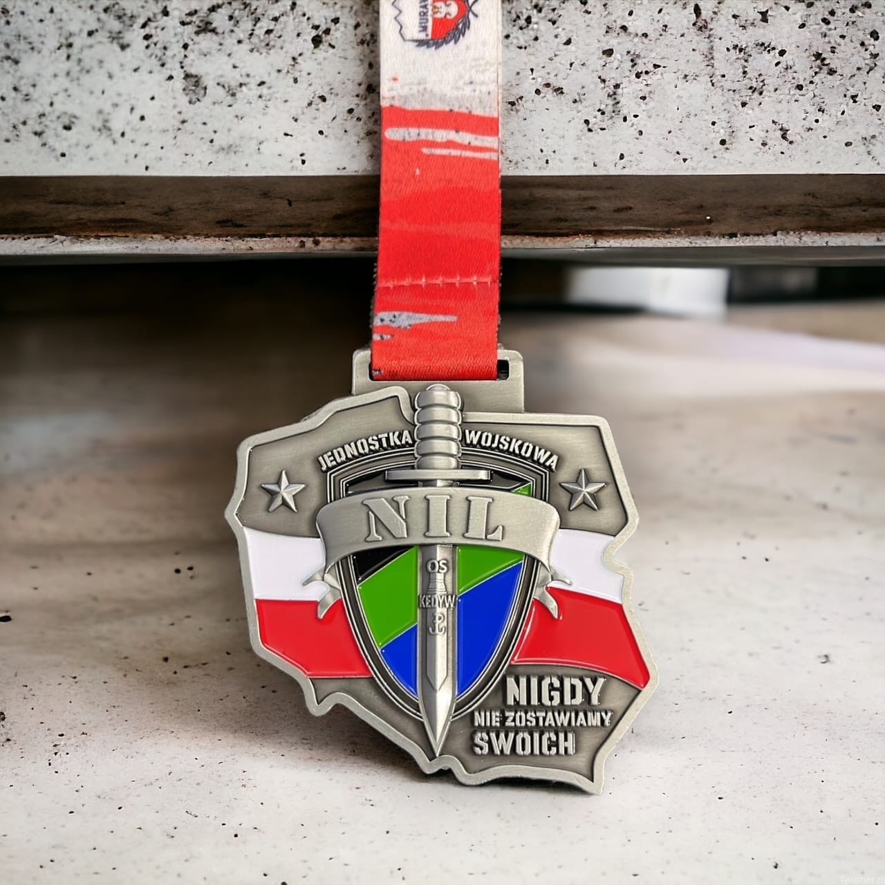 Prezentowany medal został wykonany w formie odlewu, a jego kształt odwzorowuje kontur mapy Polski z precyzyjnie zaznaczonymi granicami. To unikatowe trofeum nawiązuje bezpośrednio do służby wojskowej i zostało zaprojektowane specjalnie z myślą o Jednostce Wojskowej NIL - elitarnej formacji Wojska Polskiego.