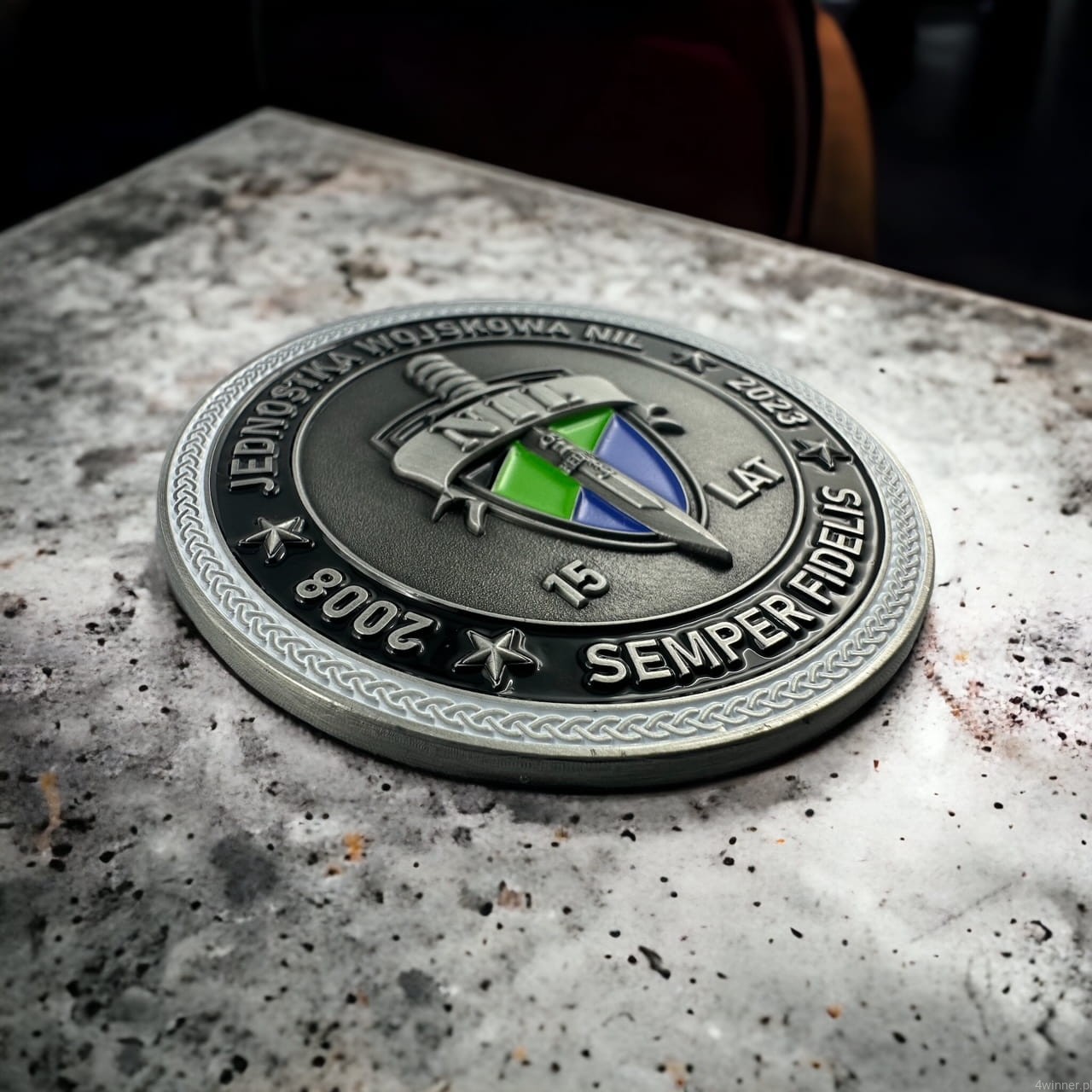 Prezentowany medal typu COIN to starannie wykonane, odlewane odznaczenie pamiątkowe, stworzone z myślą o uhonorowaniu Jednostki Wojskowej NIL - jednej z najbardziej prestiżowych i elitarnych formacji w strukturach Sił Zbrojnych Rzeczypospolitej Polskiej. Wykonany został z wysokiej jakości metalu, łącząc w sobie trwałość, prestiż i symbolikę militarną. Posiada klasyczny, okrągły kształt, charakterystyczny dla wojskowych monet pamiątkowych, które pełnią funkcję wyróżnienia.