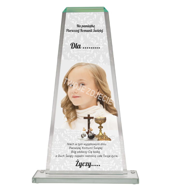 Statuetka szklana GS108-25 Pierwsza Komunia - prezent na komunię ze zdjęciem