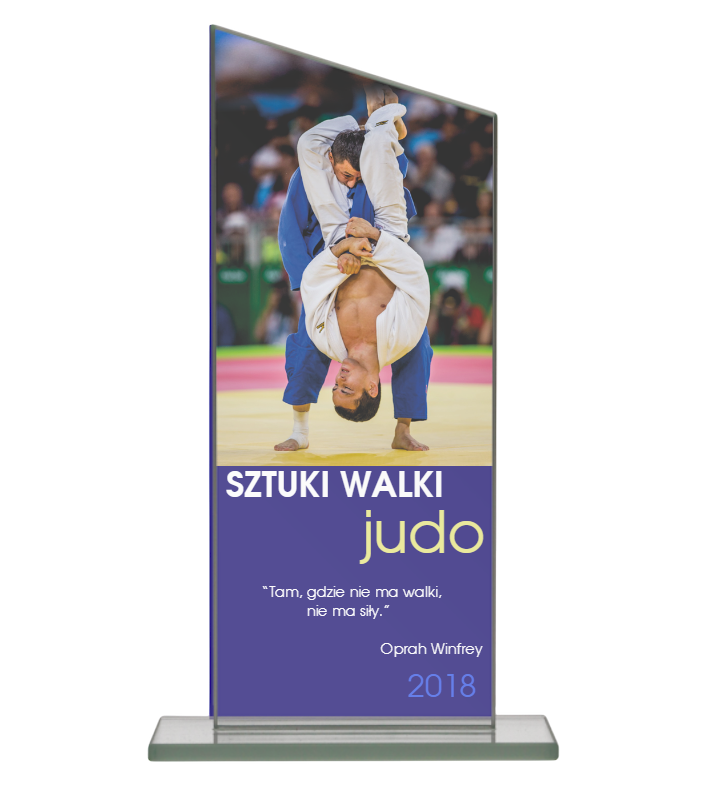 Ta wyjątkowa szklana statuetka to doskonały wybór zarówno jako nagroda, jak i prezent. Wykonana z najwyższej jakości szkła oraz umieszczona na solidnie wykonanej podstawie, łączy w sobie elegancję i wyrafinowanie. Trofeum o eleganckim i wyrafinowanym kształcie podkreśla prestiżowy charakter nagrody lub prezentu. Statuetka jest doskonała do wyróżnienia za wybitne osiągnięcia w zawodach i turniejach judo, oraz jako unikatowy prezent dla miłośników i zawodników judo z okazji jubileuszu, rocznicy czy innego ważnego wydarzenia. Alternatywą dla szklanej statuetki są: statuetki akrylowe, odlewane lub metalowe.
