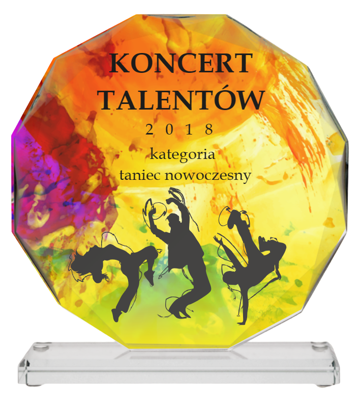 Przedstawiana smukła, szklana statuetka to wyraz elegancji i prestiżu, idealna zarówno jako prezent okolicznościowy, jak i jako nagroda . Wykonana z najwyższej jakości szkła oraz umieszczona na solidnie wykonanej podstawie, emanuje nowoczesnością i wyrafinowanym stylem. Trofeum o wyrafinowanej sylwetce podkreśla wyjątkowy charakter nagrody lub prezentu. Statuetka jest trafionym wyborem jako wyróżnienie za wybitne osiągnięcia w konkursach tanecznych, oraz jako prezent na jubileusz, rocznicę, podziękowanie lub inne ważne wydarzenie. Alternatywą dla szklanej statuetki są: statuetki akrylowe, odlewane lub metalowe.
