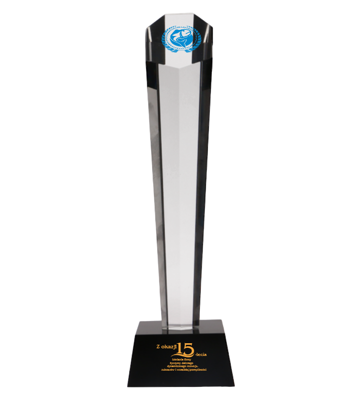 Prezentowany produkt to szklana statuetka to elegancki przedmiot, który łączy w sobie prostotę formy z wyrafinowaniem materiału. Wykonana z przezroczystego, lśniącego szkła, statuetka odznacza się wydłużonym, subtelnym kształtem, który przyciąga wzrok i dodaje prestiżu każdej uroczystości. Dzięki zastosowaniu wysokiej jakości szkła, statuetka pięknie odbija światło, tworząc efektowne refleksy, które podkreślają jej elegancję i wyjątkowość. Podstawa statuetki jest stabilna i dobrze wyważona, co gwarantuje bezpieczne i efektowne wyeksponowanie trofeum. Smukła szklana statuetka jest idealnym wyborem na różnego rodzaju ceremonie i uroczystości, takie jak wręczenie nagród, jubileusze, czy osiągnięcia biznesowe. Dzięki swojej uniwersalności i elegancji, jest ceniona zarówno w środowiskach profesjonalnych, jak i prywatnych, stanowiąc trwałe świadectwo osiągnięć i uznania. Alternatywą dla szklanej statuetki są: statuetki akrylowe. odlewane lub metalowe.