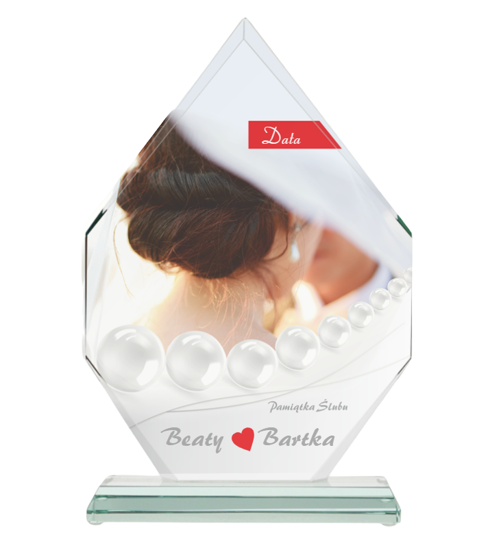 Szklana pamiątka ślubu G018 - statuetka na ślub z nadrukiem