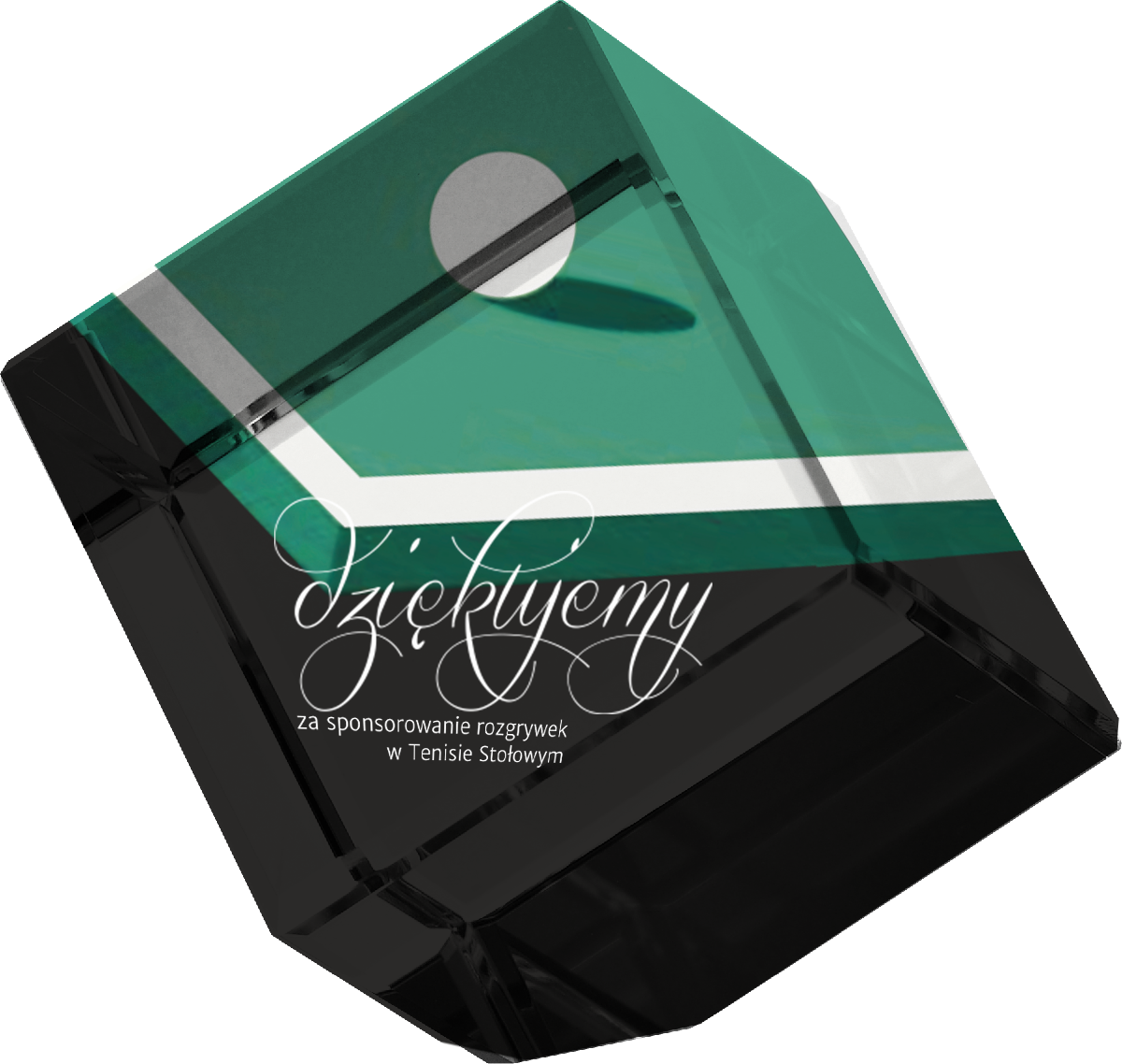 Taki sposób prezentacji grafiki nie tylko poprawia estetykę statuetki, ale również podkreśla jej unikalny charakter i ułatwia personalizację trofeum, co może być ważne w przypadku nagród lub upominków okolicznościowych. Dodatkowo, przeźroczystość pozostałej części statuetki zachowuje jej elegancję i subtelność, co pozwala na uzyskanie efektu zarówno nowoczesnego, jak i tradycyjnego.