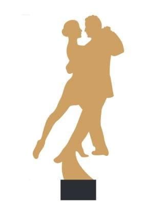 Prezentowana statuetka to wyjątkowe trofeum artystyczne, przedstawiające parę tancerzy uchwyconą w dynamicznej pozie charakterystycznej dla tańca klasycznego - z gracją, wyczuciem rytmu i pełna ekspresją. Metalowe figury, pokryte szlachetnym, złotym wykończeniem, osadzone zostały na podstawie z czarnego marmuru, co podkreśla prestiż i ponadczasowy charakter nagrody.