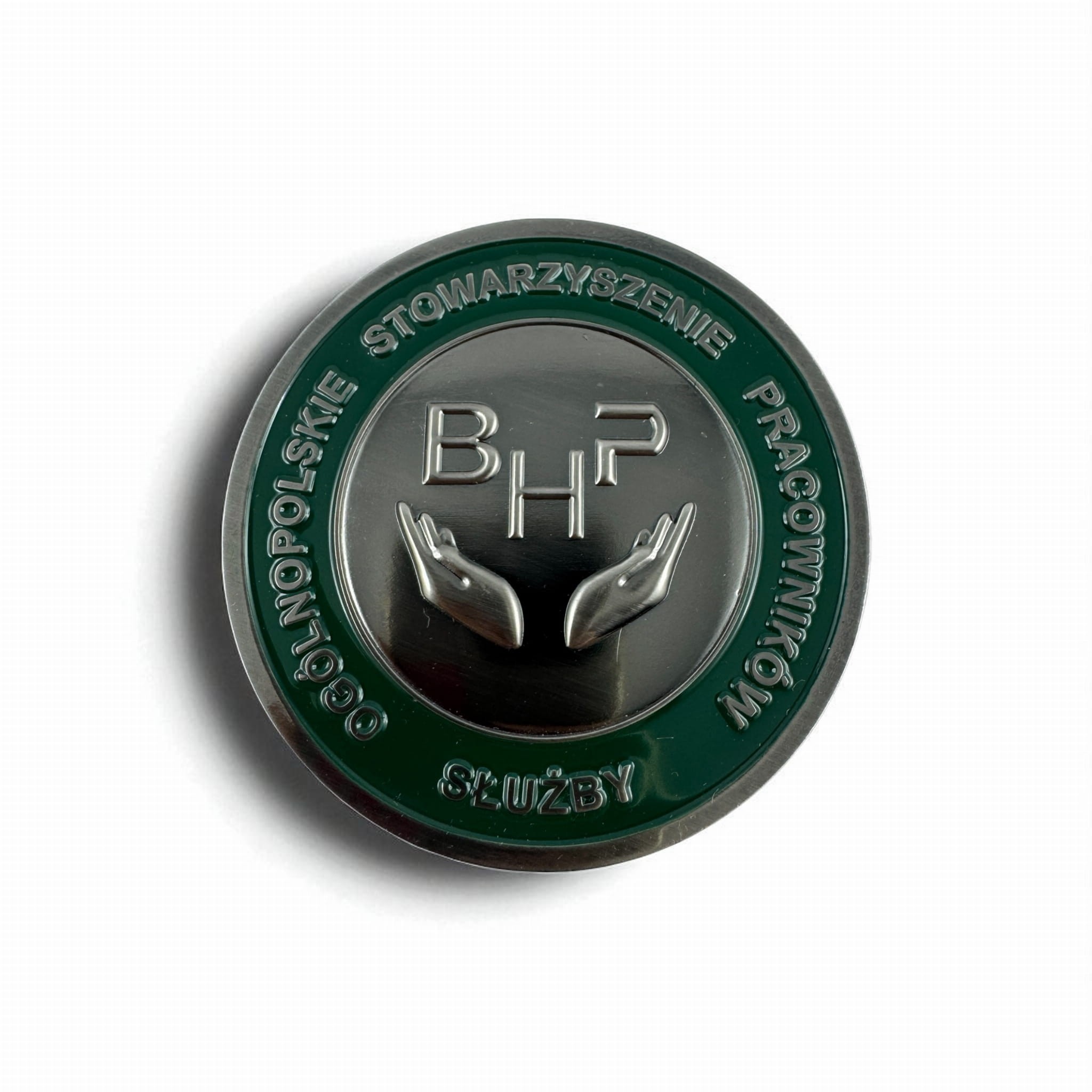 Całość zaprojektowano z dużą dbałością o szczegóły, a precyzyjność odlewu podkreśla walory estetyczne oraz solidność medalu. Medal nie tylko efektownie się prezentuje, ale również stanowi trwałą pamiątkę i wyróżnienie. To doskonały przykład personalizowanego projektu, który może być wzorem zamówienia dla klientów poszukujących unikatowej formy uhonorowania działań związanych z bezpieczeństwem, odpowiedzialnością społeczną czy kulturą pracy.